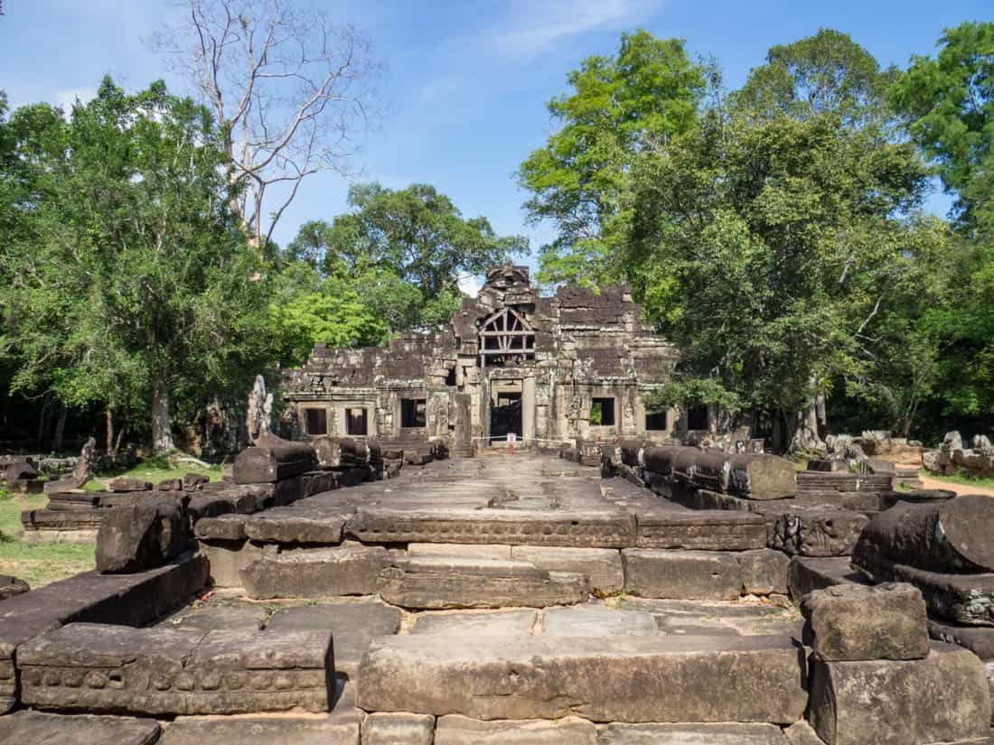 The name of Preah Khan is derived from “Holy Sword” as the 12th-century temple is dedicated to a major victory King Jayavarman VII achieved over Chams invading from present-day Vietnam. While you won’t find the holy sword there, you can wander in an expanse of ruins that are mostly unrestored and covered in jungle flora. Several of the galleries have not collapsed. So you can get lost in narrow corridors, even climb the second level, find stupas and shrines, and marvel at intricate carvings on the outer walls. There is also a moat, an access path lined with lotus sculptures, and the outer wall remains intact in some areas. If I had to choose, I’d say Preah Khan is my favorite Angkor temple.
