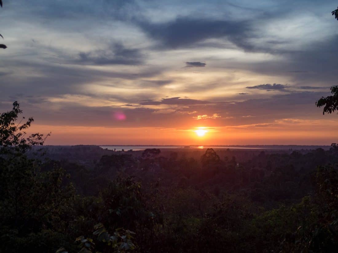 The go-to spot for sunset is the largest hill in the Angkor Archeological Park, Phnom Bakheng, topped by its pyramid-shaped temple. Note, that the number of visitors to the upper part of the temple is limited to 300 at a time and that visitors will arrive up to an hour before to secure the best places. However, I found that along the “Safety Path” a couple of nice spots allow for excellent views of the sun setting over the West Mebon pool.