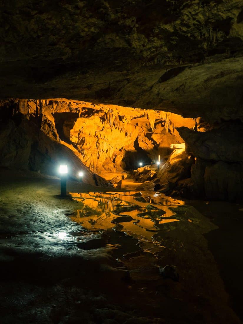 The entrance fee for Dong Nguom Ngao (Động means cave in Vietnamese) is also 40,000 Dong. Either bring flip-flops or rent a pair from one of the stalls outside the caves (5,000 Dong). You’ll want the waterproof footwear for the last part of the cave explorations.