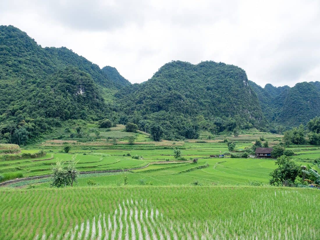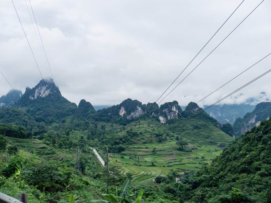 The journey takes about 6 hours, so jumping on the night bus (conveniently outfitted with the typical Vietnamese sleeper seats that recline almost entirely but are only comfortable for thin and small people) could save you an overnight stay in Cao Bang. The night bus arrives in Cao Bang at 5 am. Otherwise, you’ll find a few guesthouses (and even a hostel) along the main stretch outside the bus station; if you want to book ahead, Booking.com has some options in Cao Bang but not many.