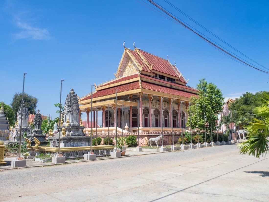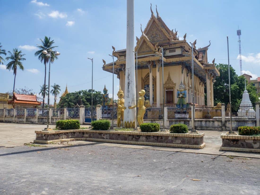 Battambang is dotted with dozens of ornate Khmer Buddhist temples glistening white and golden in the sun. Each of them has individual features like gates reminiscent of the portals in the Angkor complex or golden monkeys guarding the flag posts.