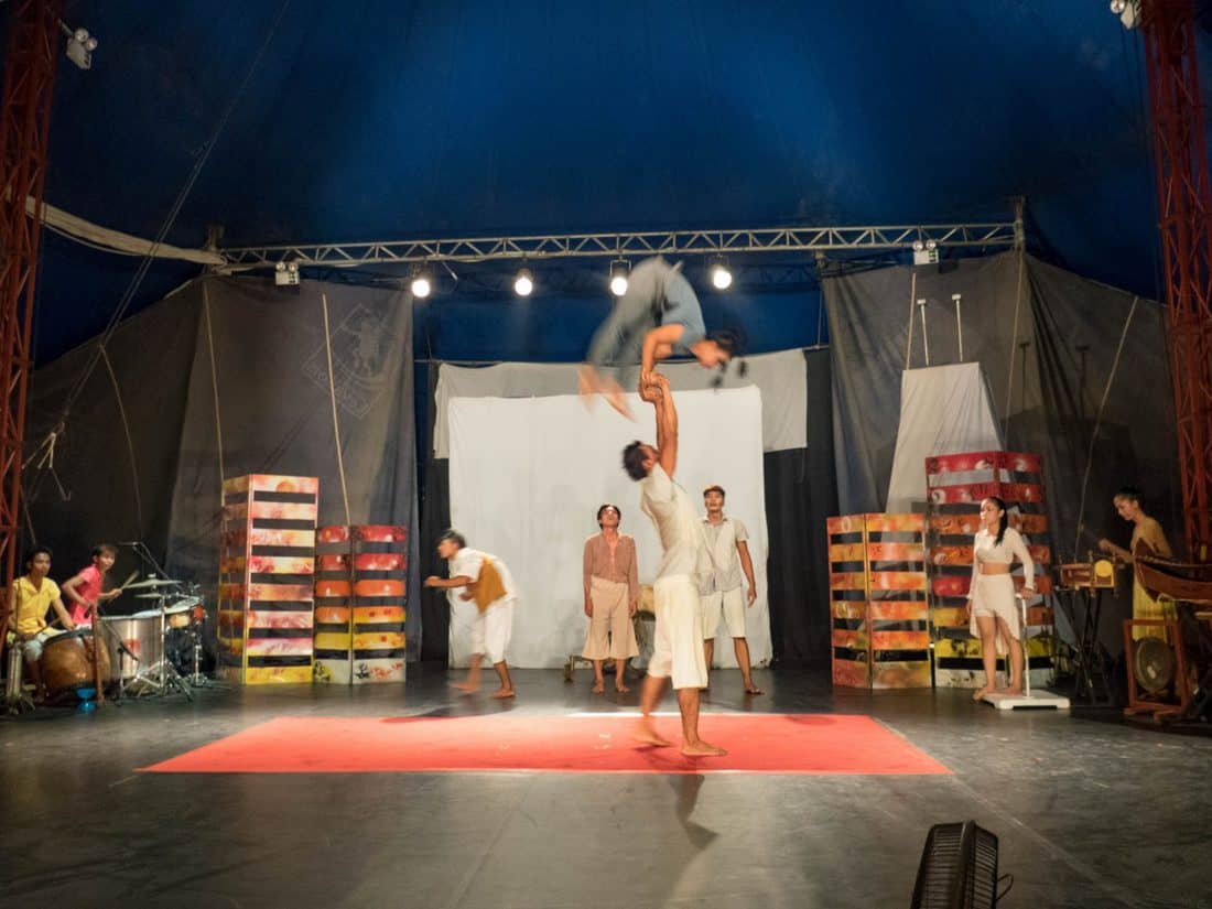 I went to a program called Tchamlaek, which means ‘weird’ in Khmer. It was an indeed strange but also very entertaining mix of dance, circus artistry, and traditional music threaded along a storyline about five children building their father a house.