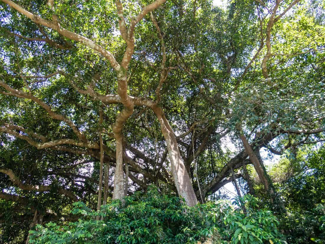 Its crown spreads a good twenty meters in all directions and from the branches roots, some as thick as tree trunks, have firmly connected it to the ground.