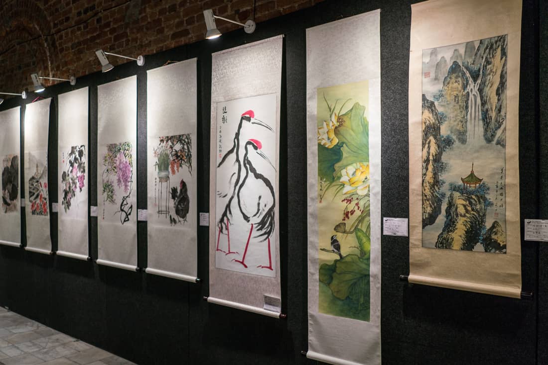 I entered the building, and it turned out to be the annual exhibition of Penang’s brush painters club. There were about 50 paintings, from letter-sized to wall panels.
