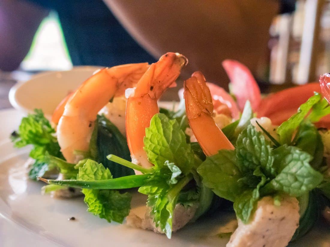 Vietnam equals excellent food. Local delicacies include Cao Lao noodle soup, seafood, and Banh Xeo. My favorite dinner spot is – for the perfect combination of quality, choice, and price – the row of restaurants on the eastern end of An Hoi island. Mr. Son, Miss Tien,… they all consist of only one table. They all offer cooking courses. They all advertise their excellent TripAdvisor rating. They all have an almost identical menu. We’d often go to Mr. Son’s, the red table on the left side of the row. Two Bia Lao (fresh beer) and two courses rarely cost me more than 100,000 Dong ($5).