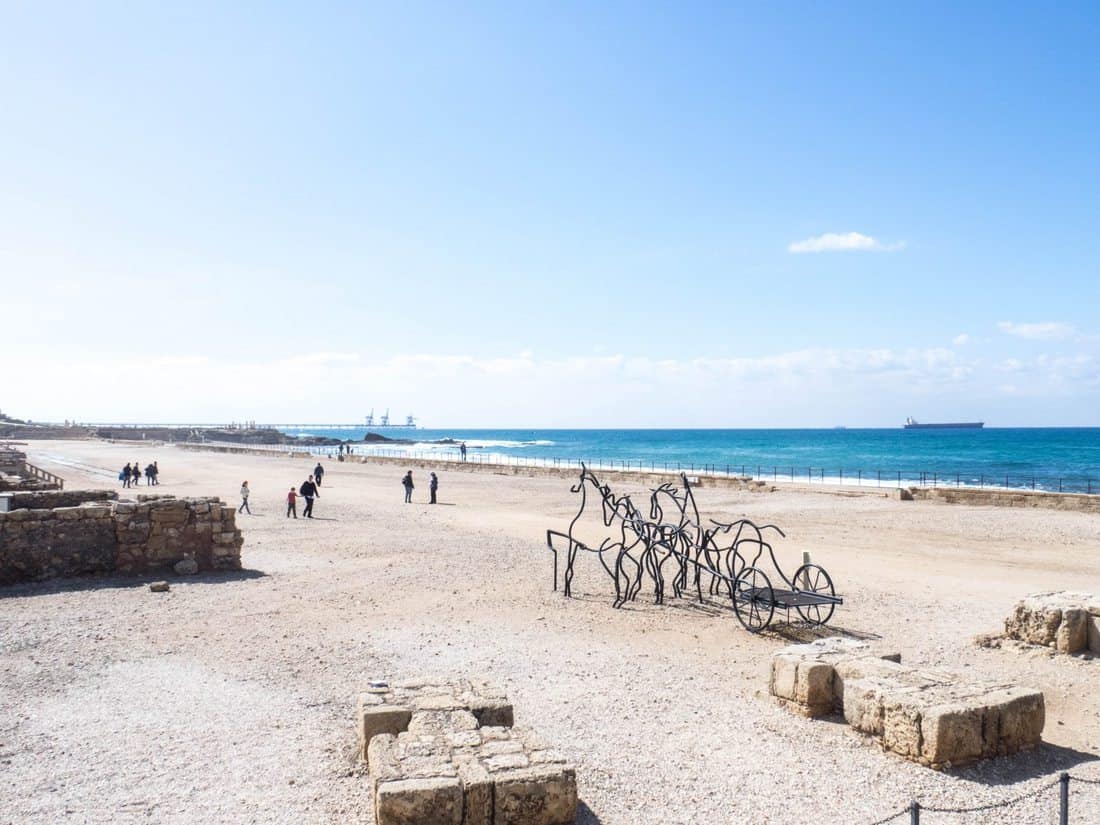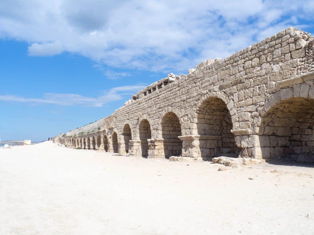 I visited Caesarea (also: Qeisarya) on my last day in Israel because of the following quote and discovered one of my favorite historical sights in the country: an aqueduct on the beach.