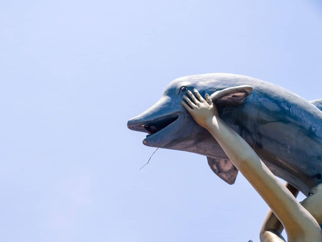 - Dolphin sculpture with bird