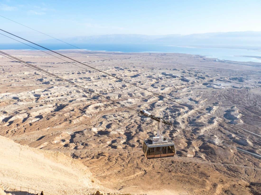 - The cable car with Dead Sea in the background