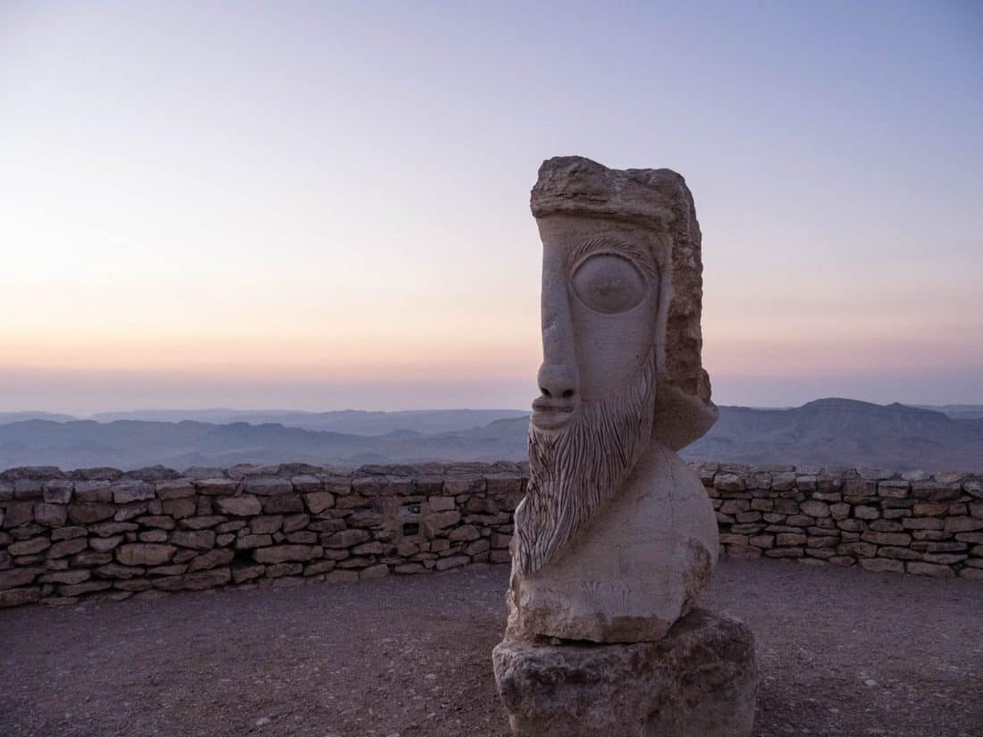 Mitzpe Ramon translates to “Ramon lookout.” A fitting name for a small town perched on the cliffs of Ramon Crater (Ramon Mekhtesh). Founded less than 70 years ago as a camp for the workers building Route 40 between Beer Sheva (Be’er Sheba) and Eilat, the town is now home to a mixed community of artists and hippies along with Russian immigrants.