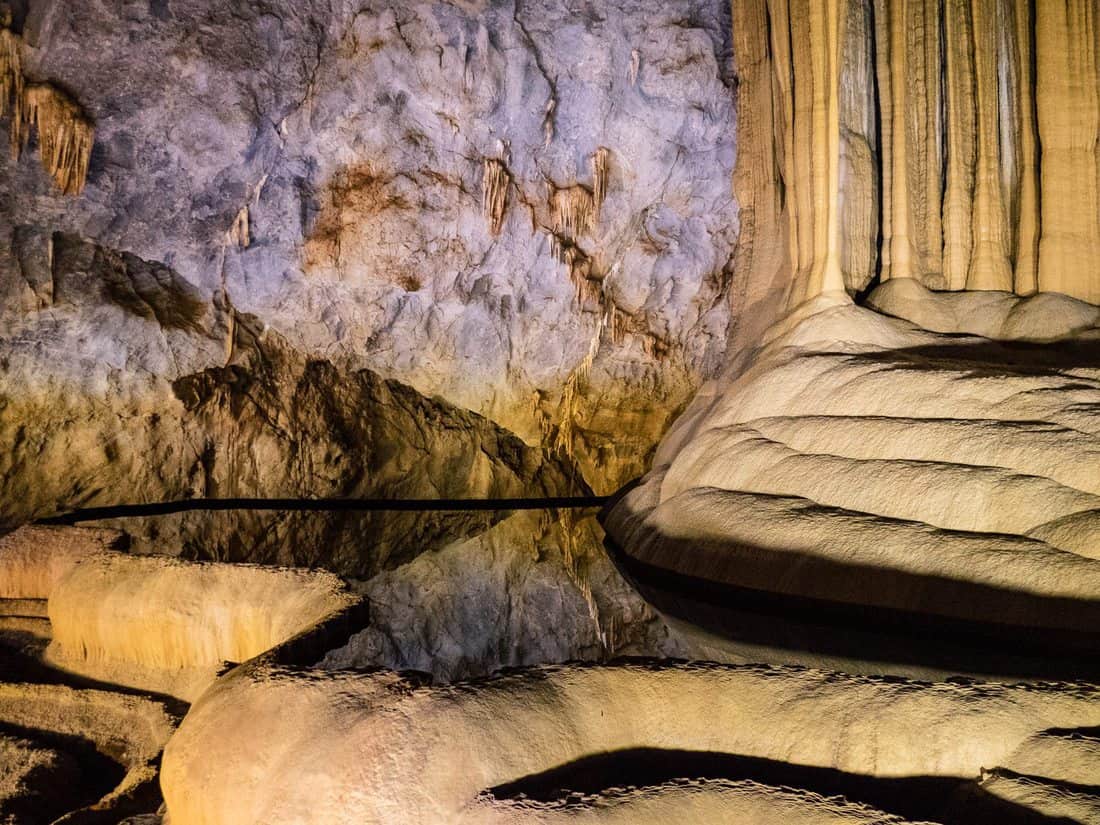 Once you’ve made it to the entrance at the end of the long climb, you have to go back down into the cave. Paradise Cave offers an about 2 km long walk on a raised platform into the cave; you cannot venture off this path. There is plenty of light illuminating the stalactites, stalagmites, pools, etc. However, there are also plenty of people and tripod photography is difficult with the vibrations on the wood.