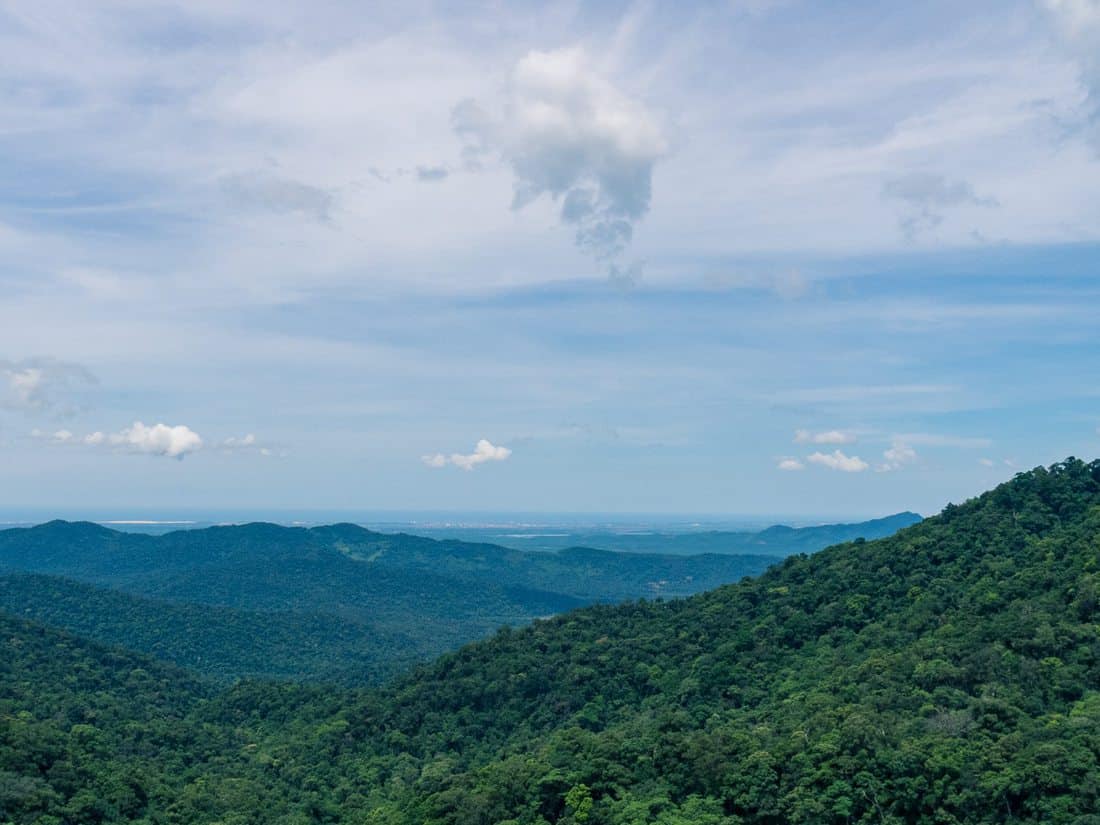 The first stop is an enclosure for animals that were injured and are cared for by the Botanical Garden staff. I see a massive python (curled up in a separate enclosure) and a few monkeys lounging on trees. I watch them for a few minutes before I start my hike.